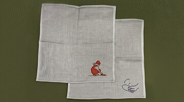 - 今治ハンカチタオルに左官女子と鏝塗りを刺繍した各1枚を1セットにしております。